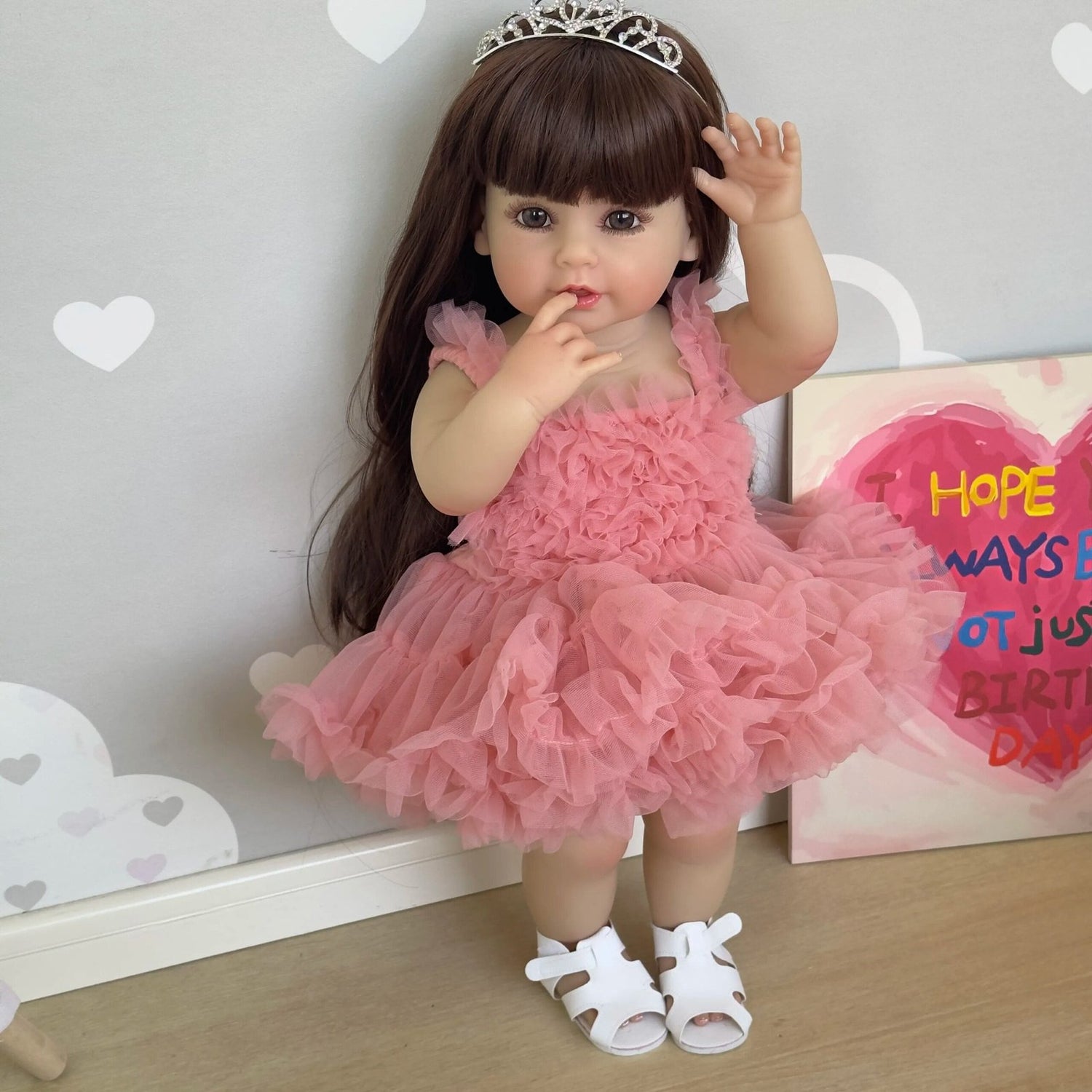 Poupée reborn de 55 cm, corps entier, en silicone souple, princesse en robe rose est en rupture de stock et sera expédié dès qu’il sera de retour en stock.
