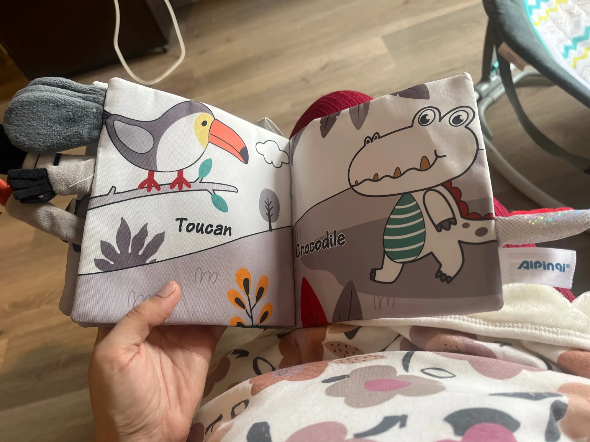 - Introduce during tummy time; narrate animal names and colors aloud.